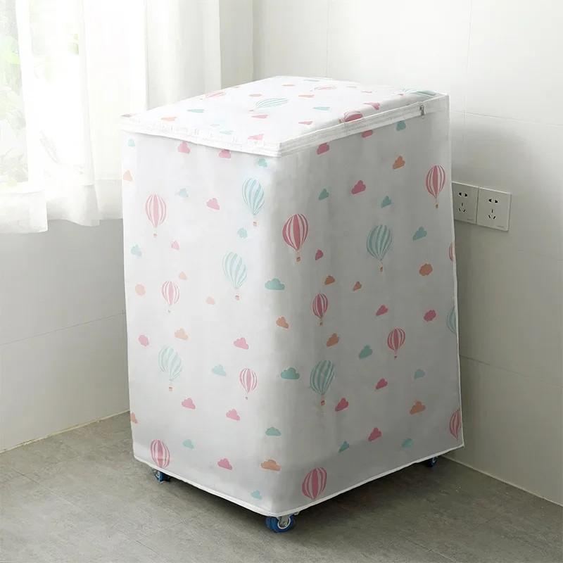 Housse de protection pour machine à laver à chargement par le haut 86 x 62 x 55 cm Motif montgolfières Zip en haut et à l'avant Housse en PEVA contre la poussière et la saleté
