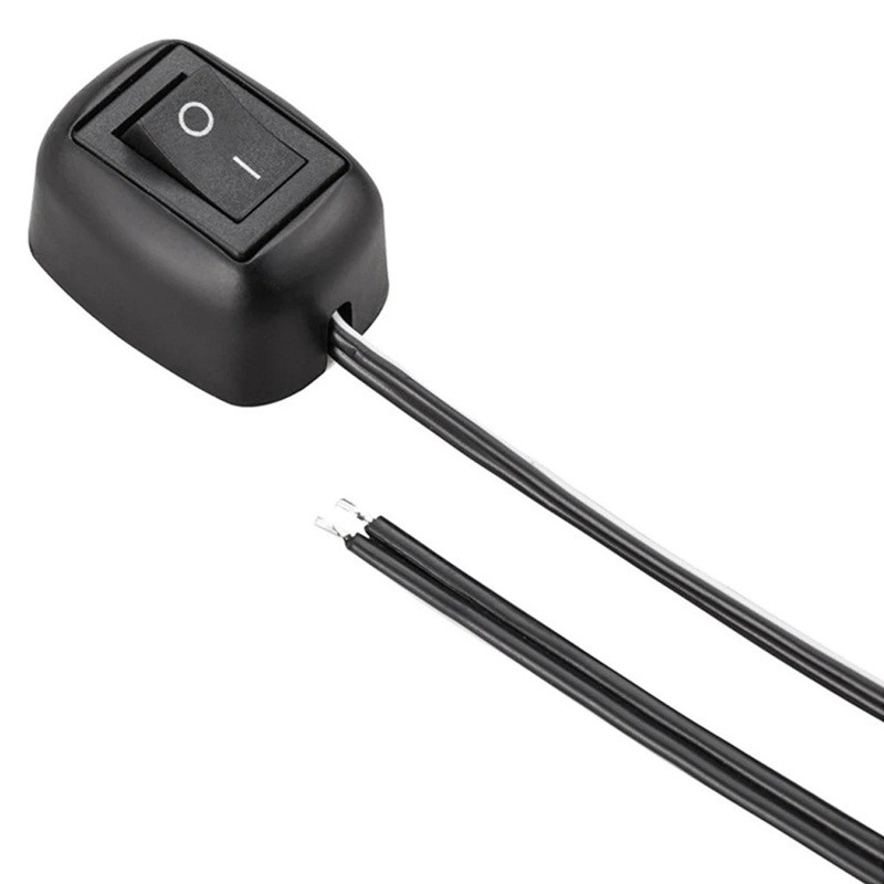 Interrupteur à bascule avec câble de 100 cm, tension DC12V et courant 10A, fabriqué en matériau PC, idéal pour les installations électriques et la commutation d'appareils basse tension. Description complète