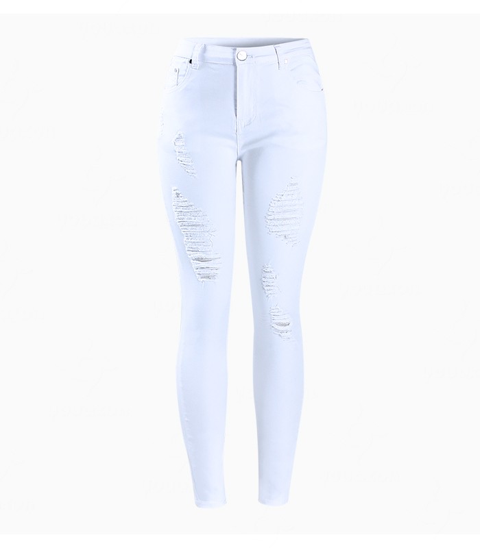 Habillez-vous avec style grâce à ces jeans blancs avec des déchirures.