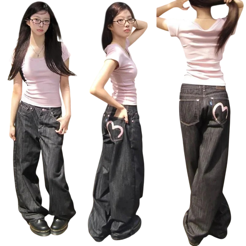 Page d’accueil Page d’accueil Vêtements et accessoires Vêtements et accessoires femme Jeans femme Jeans pour femmes couleur noire Cœur sur la poche arrière Poches Polyester Pantalons décontractés modernes Tenue décontractée stylée