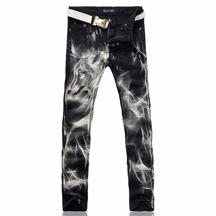 Nous vous proposons ces magnifiques jeans pour hommes avec un imprimé de loup.