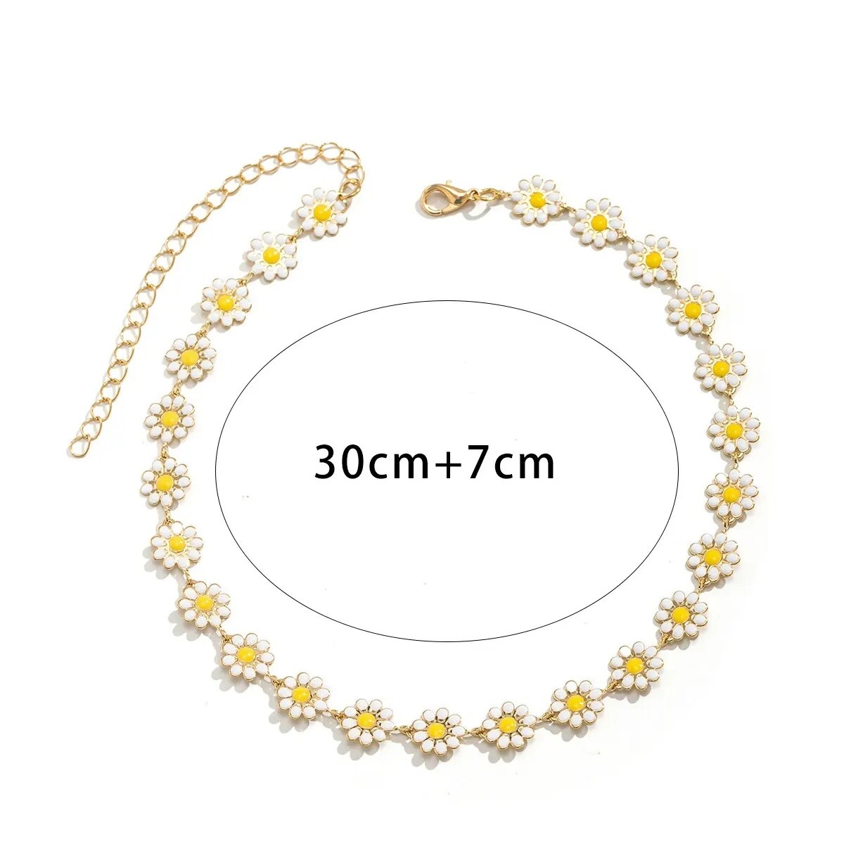 chaîne dorée est de haute qualité et met délicatement en valeur le design floral, offrant au look une élégance intemporelle. Le choker est conçu pour s'adapter parfaitement à différents styles de vêtements. Le motif floral des marguerites ajoute une touche de