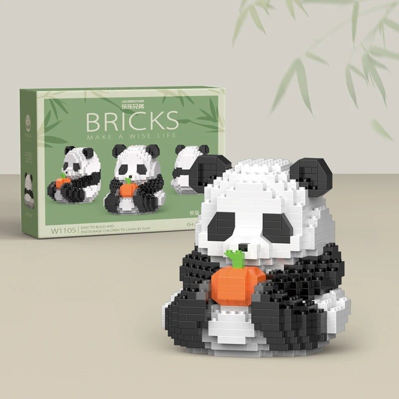 Jouet de construction pour enfants en forme de panda, qui est assis et tient une petite citrouille dans ses pattes, 488 pièces, construction créative et amusante