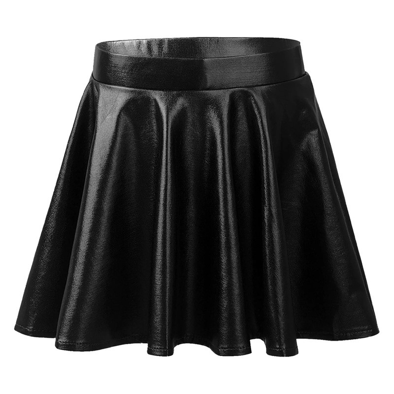Jupe Fille Unie Brillante Au-dessus du Genou Polyester Spandex Jupe Élastique de Fête pour Filles