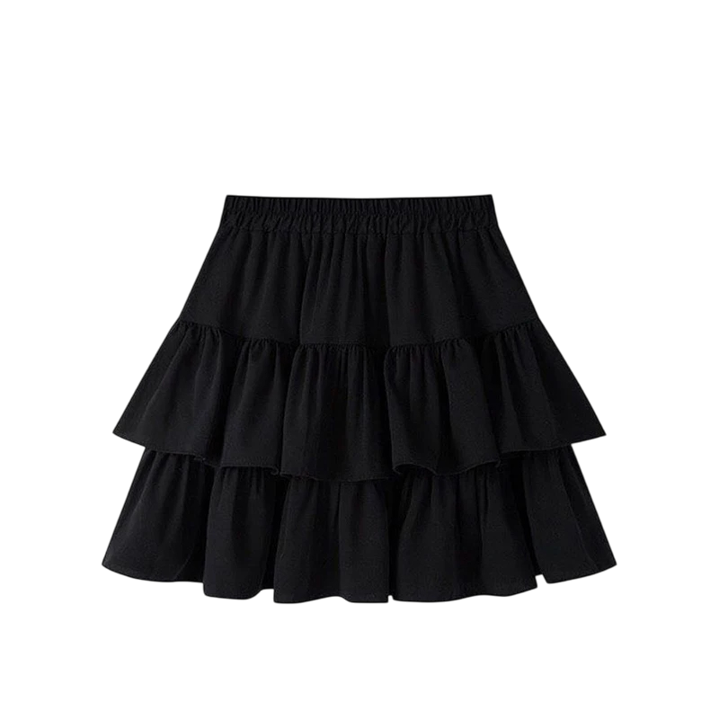 Jupe superposée stylée avec volants et taille élastique qui apporte féminité, liberté de mouvement et élégance à chaque tenue. Description complète