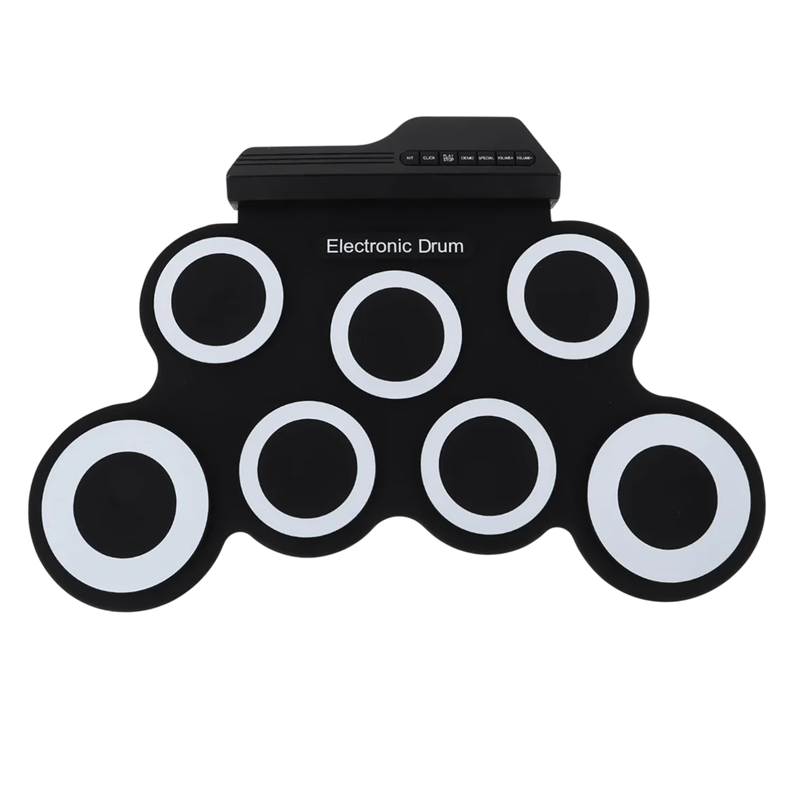 Le kit de batterie électronique en silicone pliable est la solution idéale pour tous ceux qui souhaitent jouer et s'entraîner à la batterie partout et à tout moment. Grâce à son design à rouleau, il est extrêmement compact et facile à transporter, ce qui le rend utilisable à la maison, à l'école, en voyage ou lors de répétitions. Les dimensions de 43 × 28 × 2,7 cm offrent suffisamment d'espace pour jouer confortablement tout en occupant peu de place.