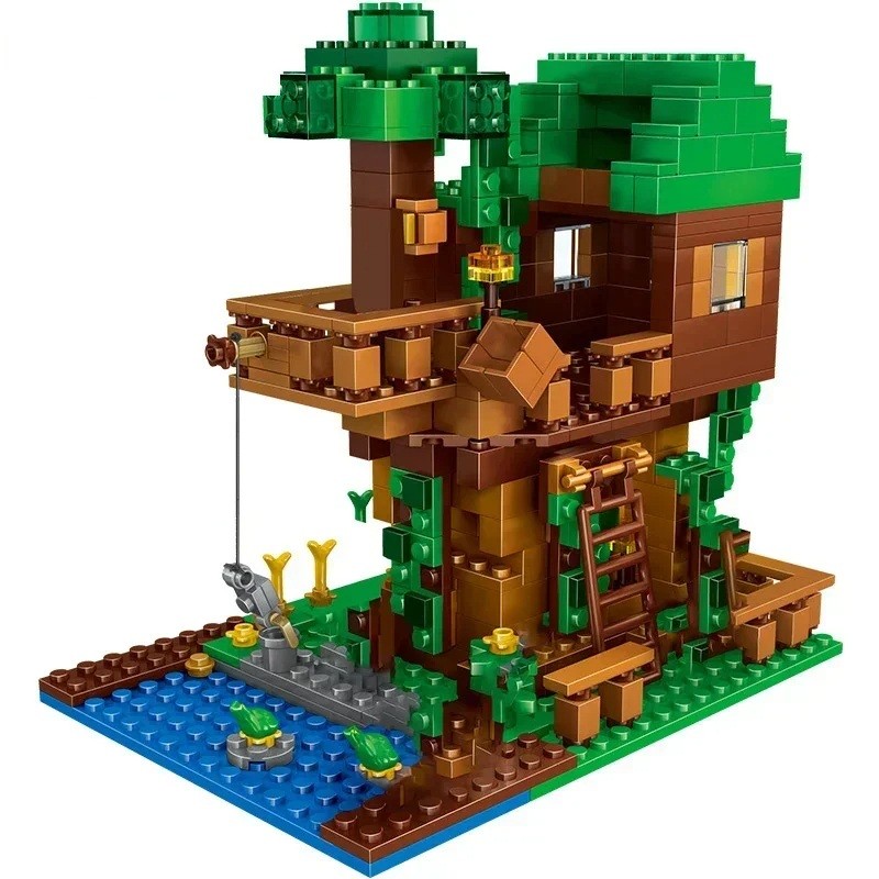Kit de construction maison dans l'arbre 9 x 6,5 x 11 cm Inspiré par Minecraft Jouet créatif pour enfants Kit de construction avec figurines 4 personnages