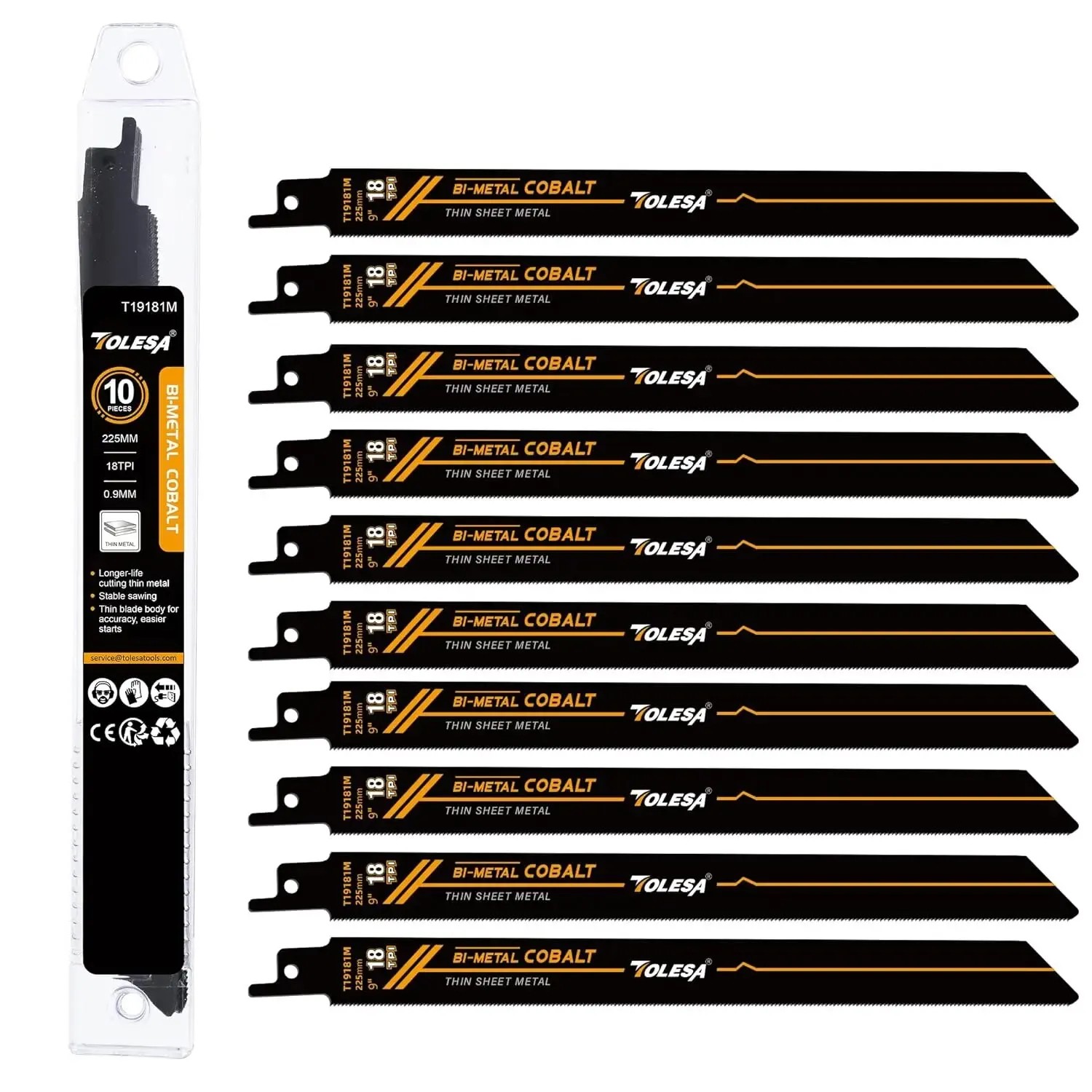 Lames de scie set de 10 pièces 225 mm Lames de scie bimétalliques Denture fine 18 TPI Lames de rechange pour découpe précise
