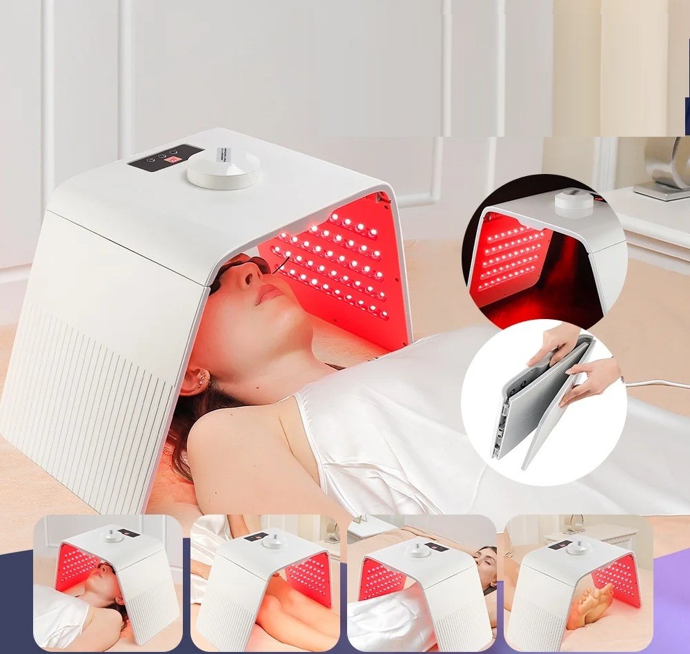 Diffuseur nano d'eau hydrate la peau en profondeur et favorise une meilleure absorption des substances actives. La lampe est équipée d'un écran LCD avec des boutons pour régler la température et la couleur, ce qui permet un contrôle total du traitement. Changement de couleurs selon l'intensité des nm de rayonnement assure une adaptation optimale à la thérapie. Convient pour une utilisation sur le visage (avec lunettes de protection), les mains, le corps et les pieds.