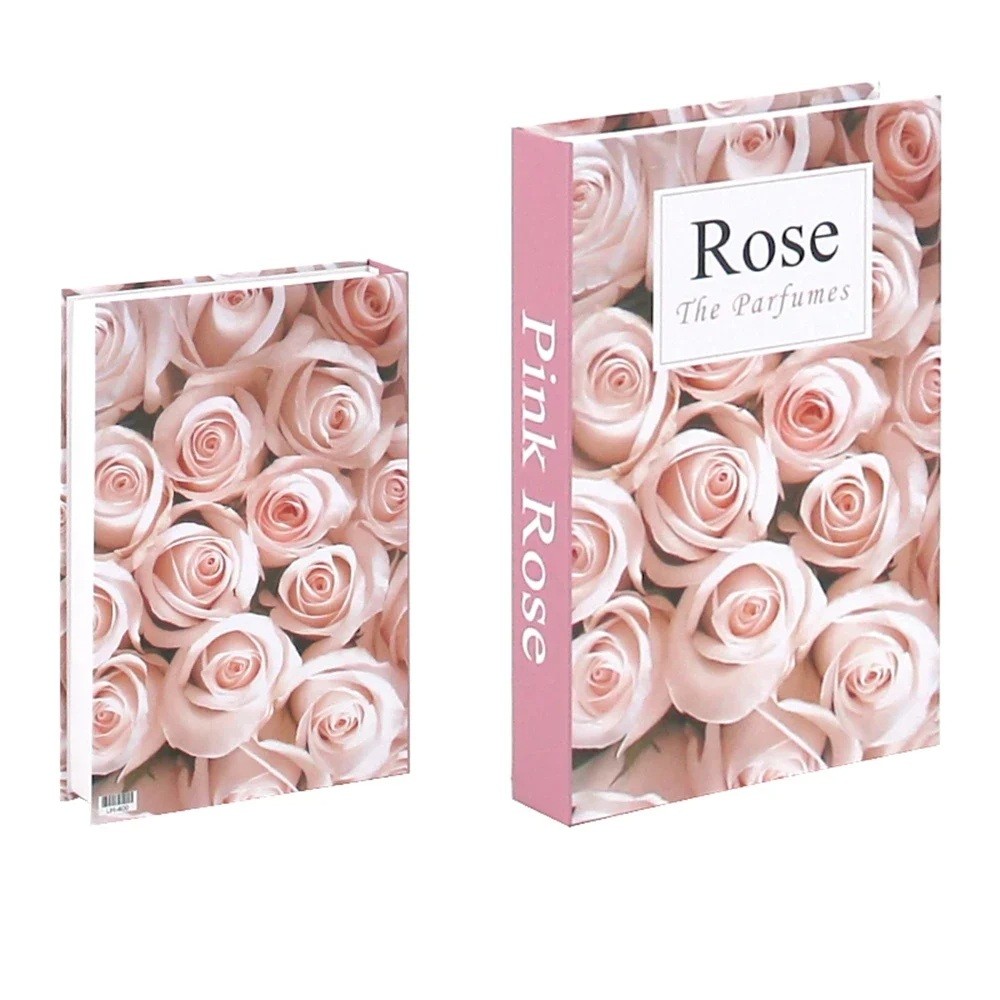 Livre décoratif factice avec espace de rangement – Décoration ouvrable avec motif de roses roses
