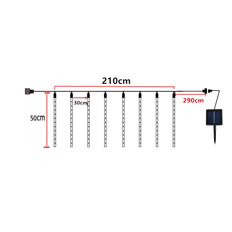 Lumière LED solaire 50 cm 8 tubes Pluie de météores 210 cm chaîne Éclairage de Noël extérieur étanche avec câble d'alimentation de 290 cm