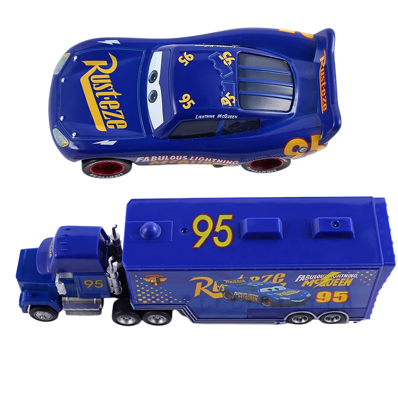 Mack Hauler et Blue Lightning McQueen Disney Pixar Cars 2 3 Camion et modèle de course en métal pour enfants Ensemble de collection