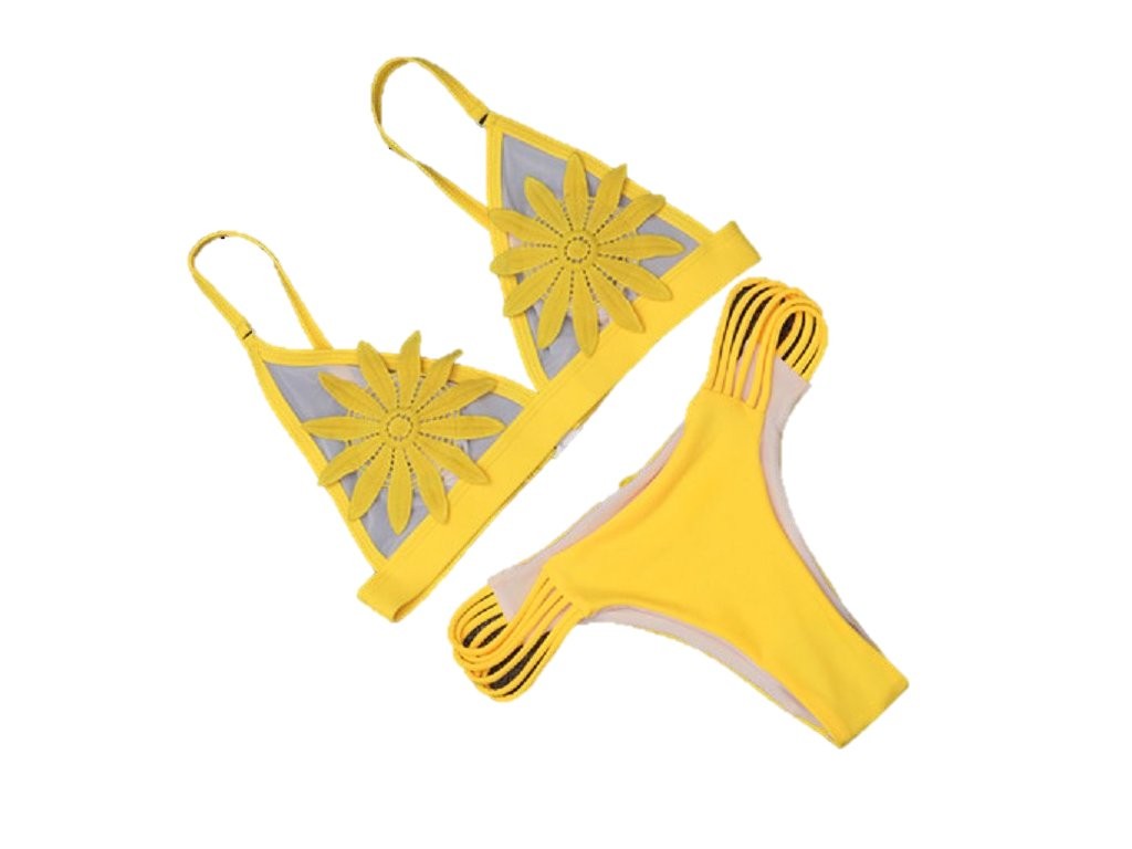 Maillots de bain brésiliens pour femmes avec des fleurs sur les bonnets J1693
