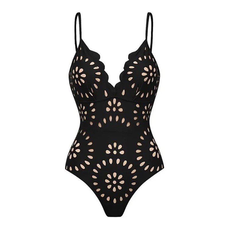 Le matériau est composé d'un mélange de spandex et de polyester de haute qualité, qui assure élasticité, résistance et longévité. Le tissu est agréable au toucher, sèche rapidement et conserve bien sa forme même après un usage fréquent. Le décolleté en V allonge visuellement la silhouette et met en valeur le décolleté. Les bretelles fines apportent légèreté et soulignent la silhouette élégante. Grâce à sa conception élastique, le maillot s'adapte au corps et assure un confort tout au long de la journée.
