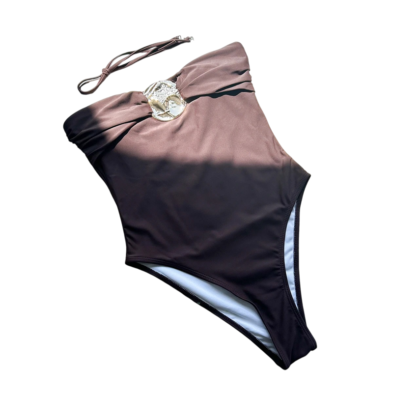 Ces maillots de bain allient élégance, confort et design moderne. Grâce à leur matériau élastique, ils s'adaptent parfaitement à la silhouette et mettent en valeur ses courbes naturelles. L'aspect minimaliste agrémenté d'un ornement dégage une sophistication et un style. Si vous recherchez un maillot de bain une pièce sans bretelles avec un détail élégant, ce modèle est un excellent choix pour la saison estivale.