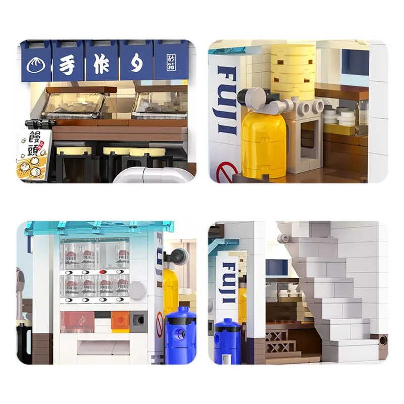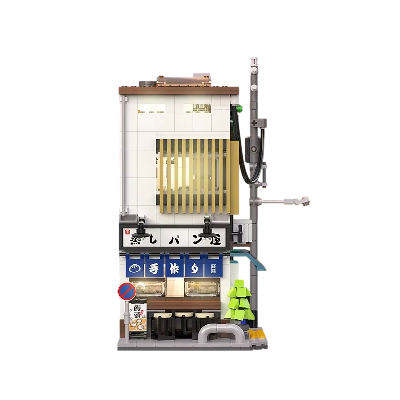 Kit de construction détaillé de la maison japonaise avec 1108 pièces et lumière USB offre une construction créative, des éléments réalistes et un design élégant de café traditionnel. Description complète