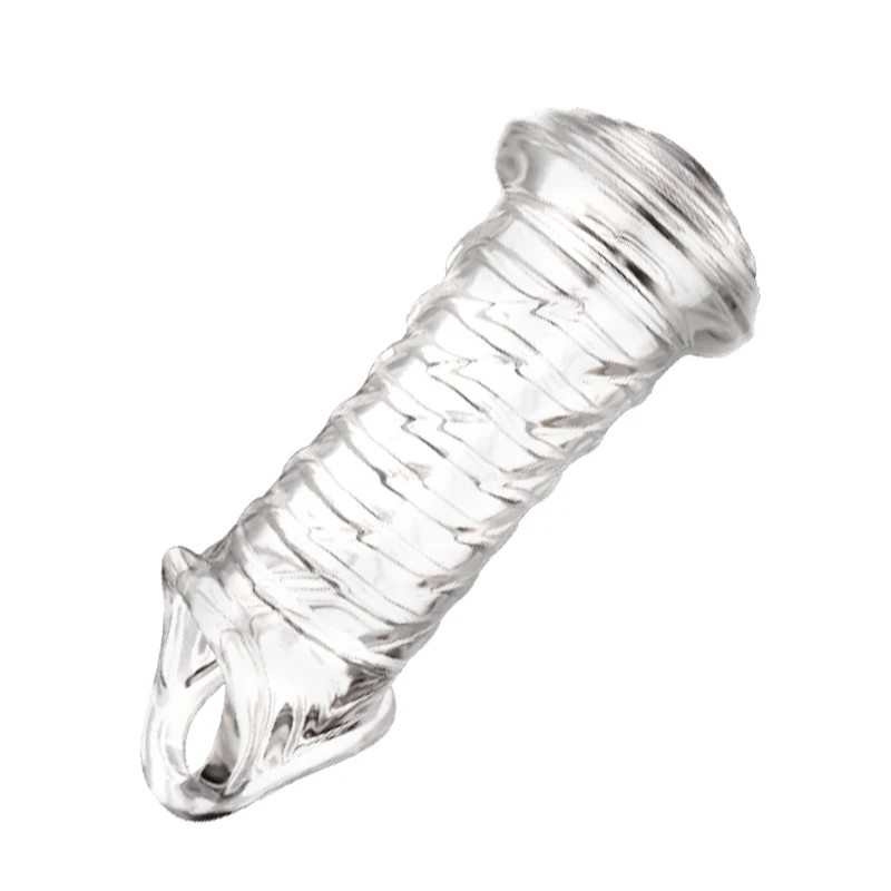 Ce manchon en silicone élastique est destiné aux hommes qui souhaitent intensifier leur expérience érotique tout en mettant en valeur visuellement et sensiblement leur performance. La partie supérieure du manchon est façonnée comme un chapeau de champignon – la pointe élargie crée une sensation de plénitude plus marquée à chaque pénétration et offre en même temps une stimulation plus forte pour le partenaire. Tout le long du manchon, des anneaux de massage en relief augmentent la friction et donc le plaisir de chaque mouvement. La partie inférieure du manchon est dotée d'une prise intégrée qui se glisse derrière les testicules en style de cockring – cela aide à maintenir l'érection et à soutenir l'intensité des sensations. Le manchon est flexible, s'étire facilement et s'adapte confortablement.