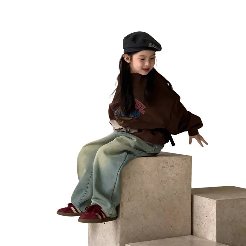 Page d’accueil Page d’accueil Vêtements et accessoires Vêtements et accessoires enfant Vêtements fille Sweats fille Manteau en polaire coréen d'hiver avec impression de lettres en coton et polyester Pull chaud et ample pour garçons et filles Haut uni chaud de différentes couleurs