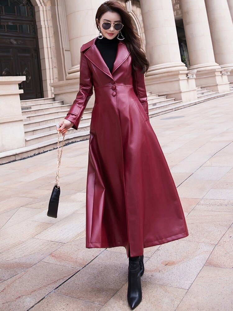 Manteau long en cuir pour femmes