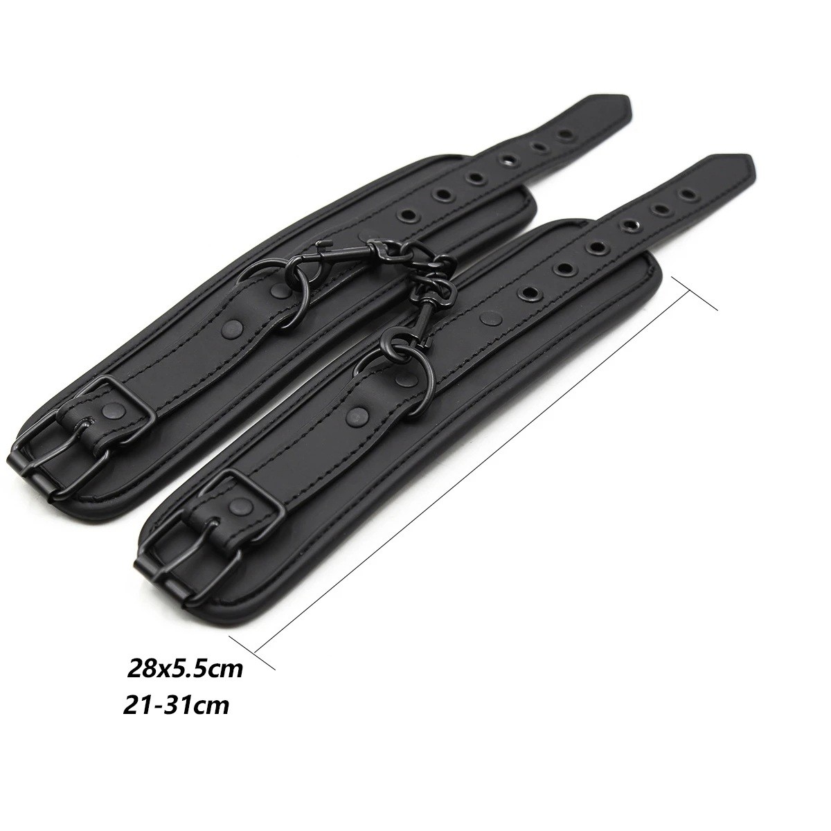 Page d’accueil Page d’accueil 18+ Menottes noires en cuir pour les chevilles avec fermeture à sangle, taille ajustable, détails en métal pour les jeux de bondage, emballage discret