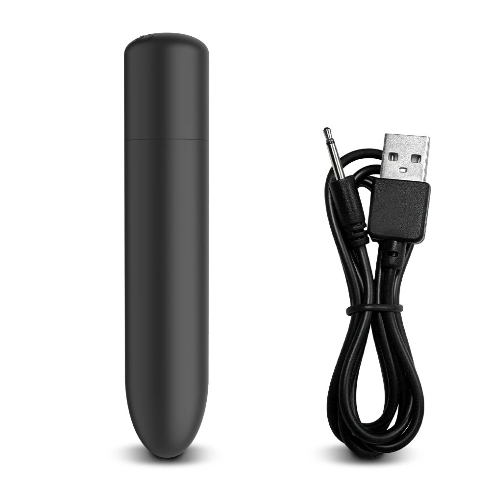 Mini vibromasseur en silicone 10x2 cm en forme de cartouche avec 10 modes de vibration et chargement USB emballage discret