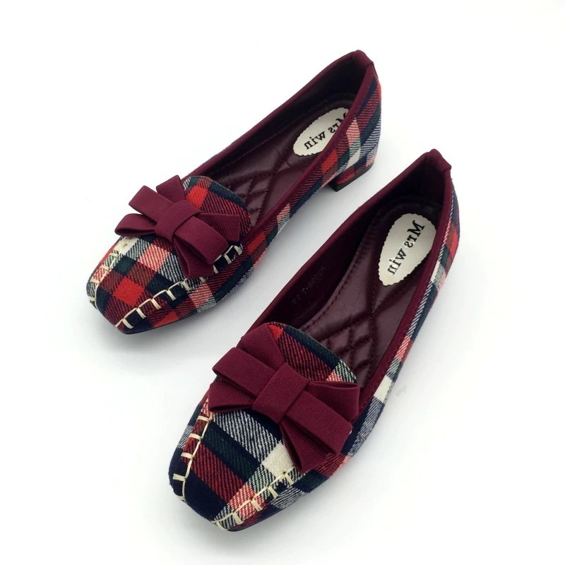 Mocassins à carreaux pour femmes avec nœud