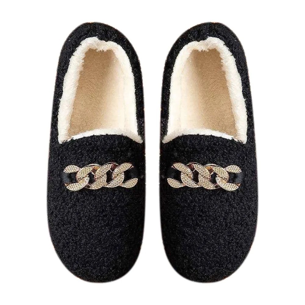 Ces mocassins en peluche pour femmes allient l'élégance du style classique à la chaleur des chaussons d'hiver. Leur forme rappelle les mocassins traditionnels, mais grâce à l'intérieur en peluche doux et chaud, ils sont parfaits comme chaussures d'intérieur pour les journées froides. La semelle antidérapante assure un pas sûr sur les sols lisses tout en conservant leur forme lors d'une utilisation quotidienne. Les mocassins sont conçus pour épouser délicatement le pied, garder la chaleur et ajouter du style même pendant les moments de détente à la maison. Ils sont le choix idéal pour chaque femme qui souhaite garder ses pieds au chaud tout en étant élégamment chaussée.