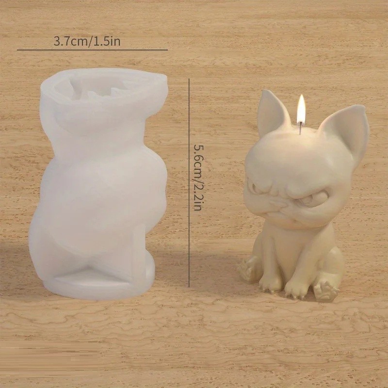 Moule en silicone de qualité pour une fabrication facile de bougies, de savon ou de chocolat en forme de chien bulldog en colère, adapté pour la création créative. Description complète
