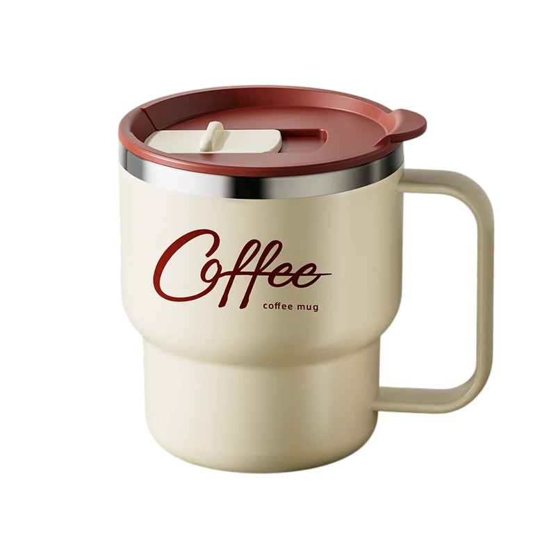 Mug en acier inoxydable à double paroi 400 ml avec couvercle et poignée pour boire du café, du thé et d'autres boissons à la maison ou en déplacement