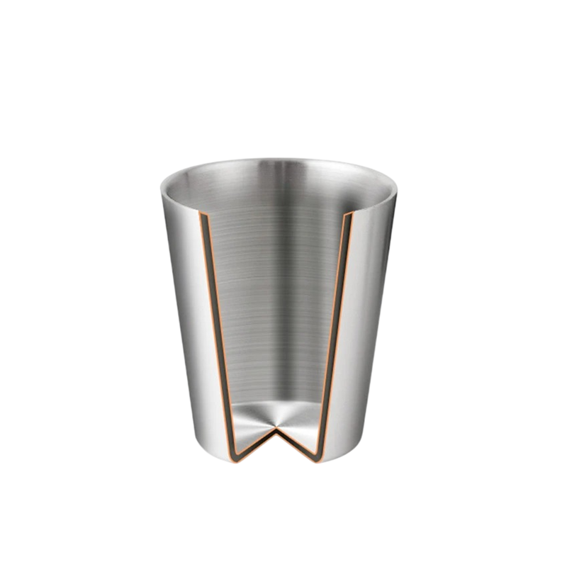 Le matériau en acier inoxydable utilisé assure robustesse et stabilité lors d'une utilisation normale. La construction à double paroi distingue ce modèle des mugs classiques et représente une solution spécifique pour le service des boissons. La surface lisse et le design simple s'intègrent dans divers environnements, quel que soit le style de décoration.