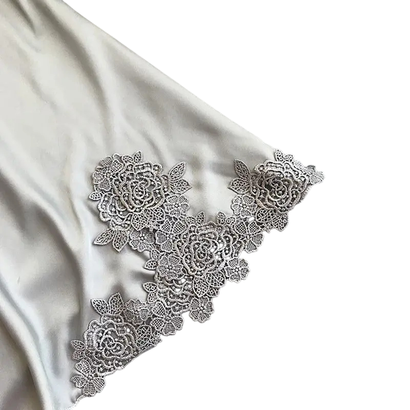 Nuisette élégante unie avec dentelle et décolleté en V. Fabriquée en polyester doux et spandex, idéale pour le sommeil et la détente. Description complète