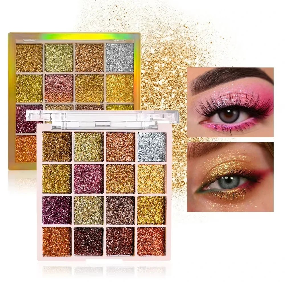 Palette de fards à paupières 16 couleurs Brillance scintillante Effet Glitter Fards à haute pigmentation longue tenue pour un maquillage de soirée et de fête