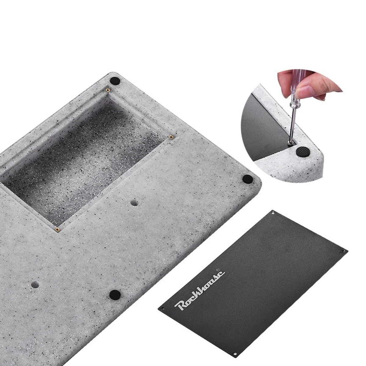 Panneau de pédales de guitare 50 x 25,2 x 6 cm Grand boîtier robuste en PE pour pédales d'effet avec bande auto-adhésive et tournevis Panneau stable pour effets de guitare