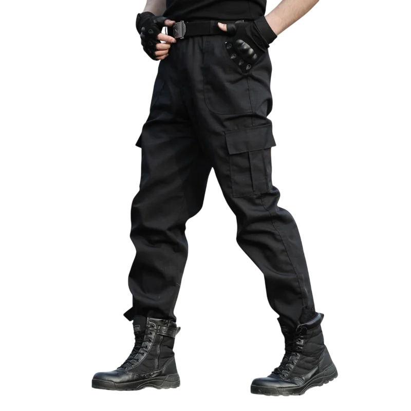 Ces pantalons Cargo tactiques militaires noirs sont conçus pour les hommes qui ont besoin d'un vêtement fiable et fonctionnel dans des conditions difficiles. Ils sont idéaux comme pantalons de travail, mais conviennent également parfaitement pour les activités de plein air. Le matériau robuste et les coutures renforcées assurent une grande résistance lors de travaux physiquement exigeants ou de déplacements en terrain difficile. Grâce à plusieurs poches pour l'équipement et les petits objets, vous aurez tout ce dont vous avez besoin à portée de main. Les pantalons sont confortables tout en étant solides, ce qui les rend adaptés à la nature, au chantier et aux services de sécurité.