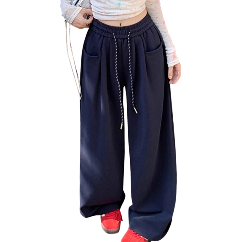 Pantalons de jogging confortables pour femmes avec poches et taille élastique à cordon, fabriqués en matériau polyester léger, idéaux pour le sport et les loisirs. Description complète