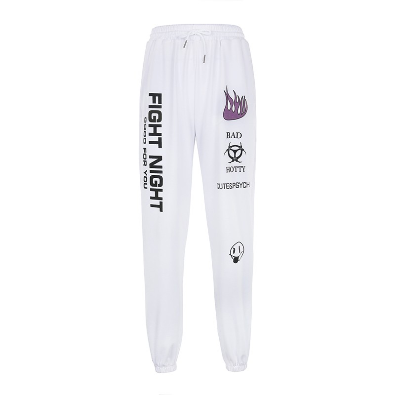 Pantalons jogger blancs pour femmes avec imprimé