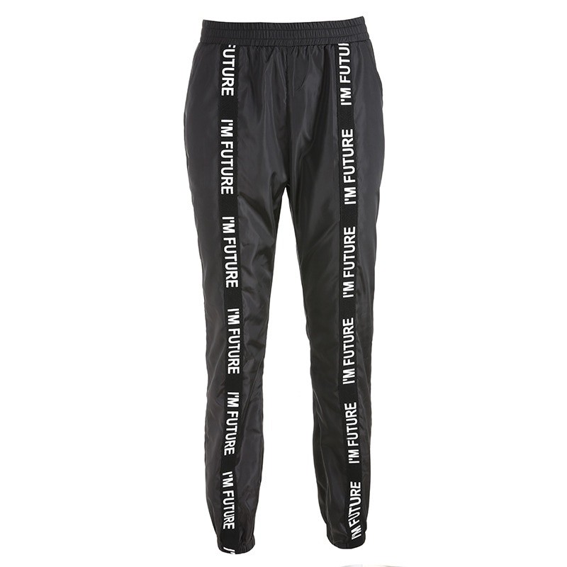 Pantalons jogger noirs pour femmes avec inscription