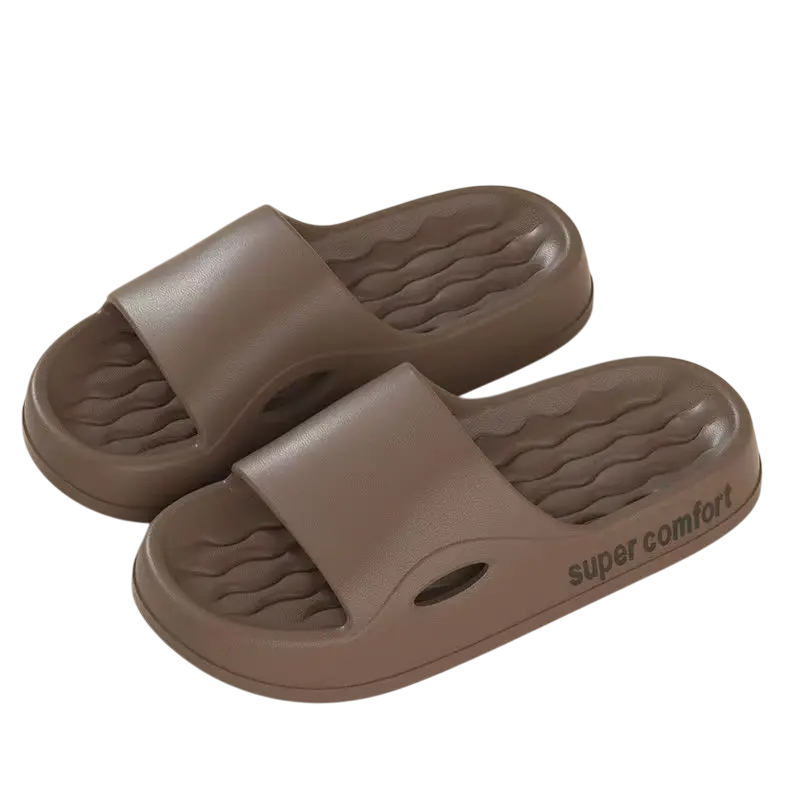 Pantoufles confortables avec une plateforme surélevée et une semelle amortissante pour une marche confortable. Antidérapantes, adaptées à un usage quotidien. Description complète