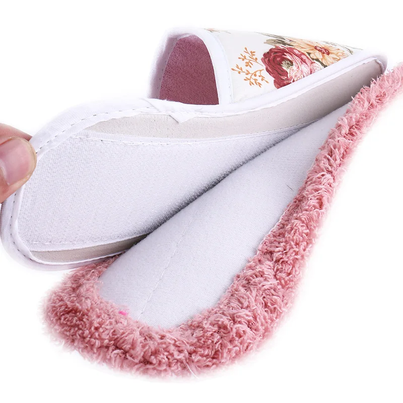Pantoufles de nettoyage de sol avec semelles amovibles en microfibre pour le nettoyage à sec et humide Lavage facile Chaussures de ménage réutilisables