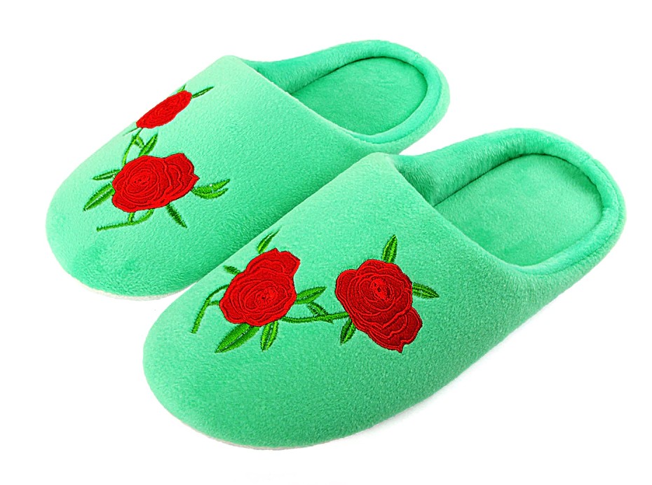 Dans ces pantoufles avec imprimé de roses, vous aurez fière allure.