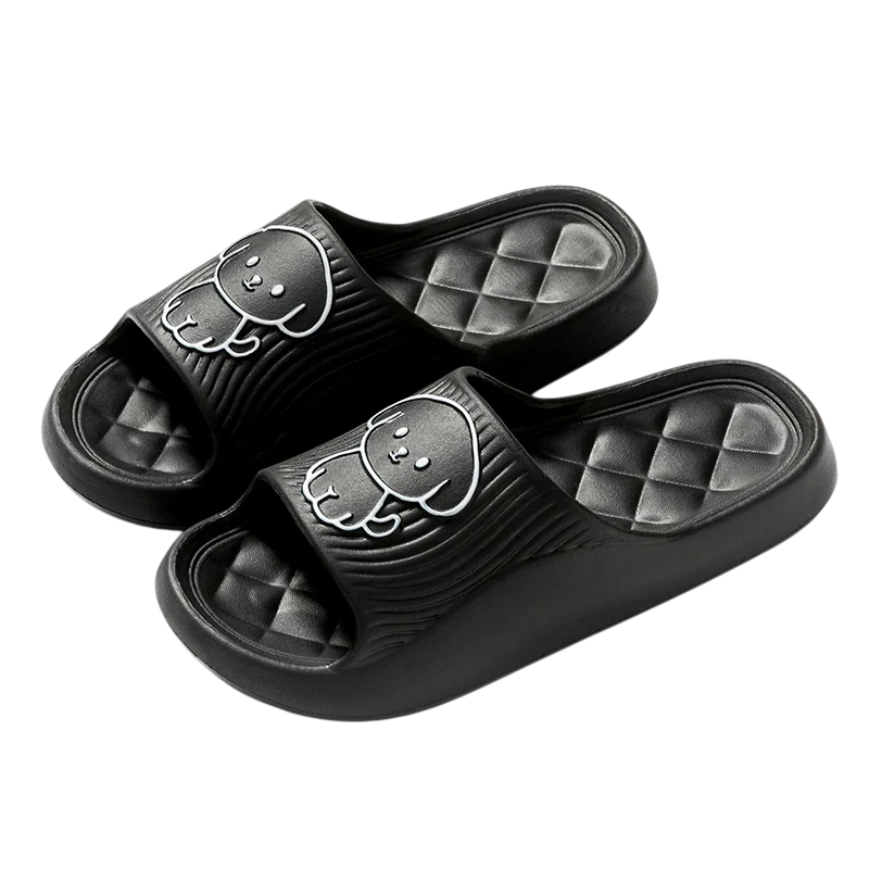 Pantoufles souples et flexibles avec un motif de chien mignon pour un port confortable à la maison. La semelle antidérapante assure un mouvement sécurisé sur le sol lisse. Description complète