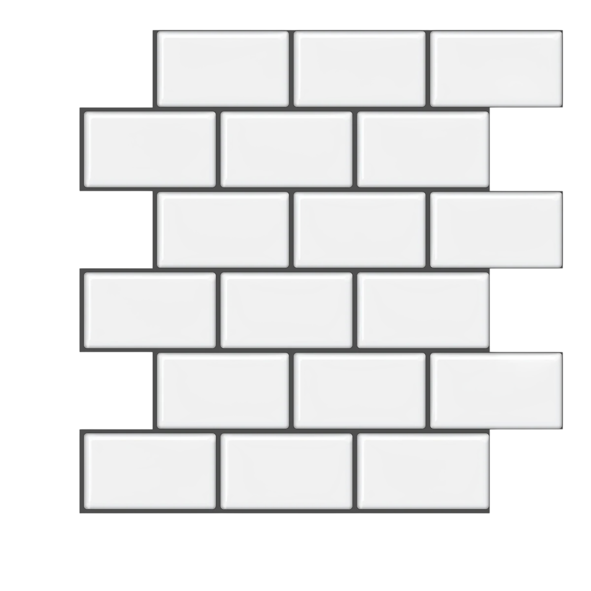 Papier peint vinyle brique blanche avec effet 3D, dimensions 30,5x30,5 cm, fabriqué en matériau PET avec colle PU. Idéal pour les intérieurs modernes, application facile. Description complète