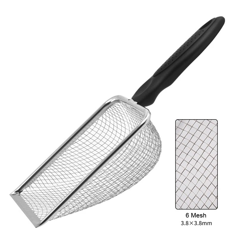 Pelle en acier inoxydable 27,5 x 10 x 5 cm pour reptiles, pelle en métal pour nettoyer le terrarium, avec des dimensions de mailles 3,8 x 3,8 mm