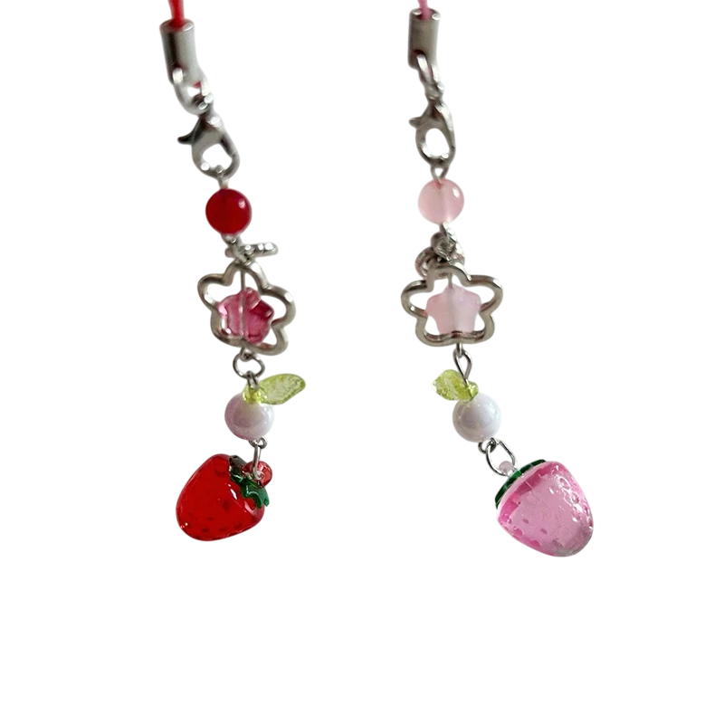 Accessoire mignon et stylé qui donne à votre téléphone mobile, vos clés ou votre sac à main un look ludique. Ce pendentif fraise pour téléphone avec perles est conçu comme un bijou décoratif et un ornement pratique. Grâce à ses petits détails et ses couleurs vives, il est à la fois délicat et original.