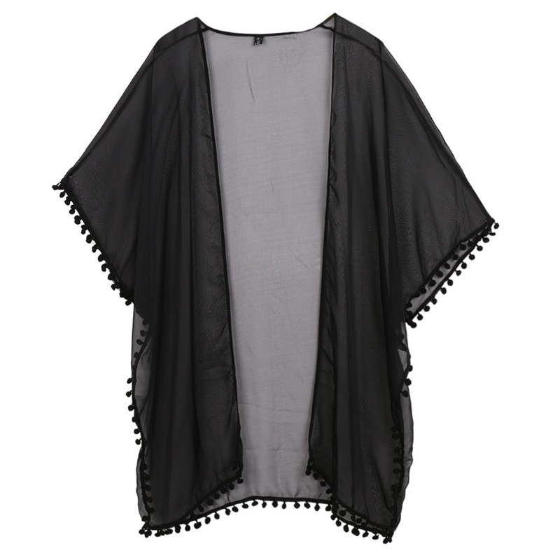 Manches courtes et amples. Décorée de petites billes au bout de l'ourlet.