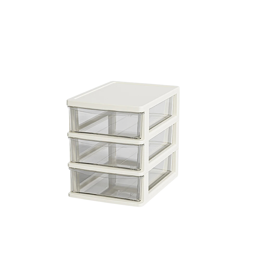 Page d’accueil Page d’accueil Maison et intérieur Rangements Boîtes de rangement Petit organisateur de bureau avec 3 compartiments 15,5x21x18,7 cm boîte en plastique PP avec tiroirs pour fournitures de bureau et petits objets