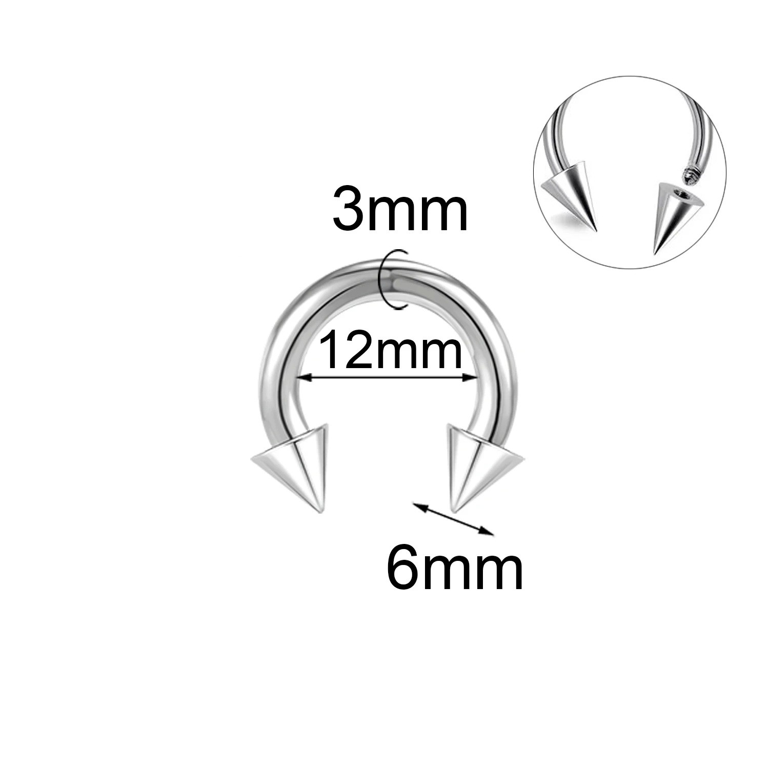 Piercing septum en forme de fer à cheval avec pointes 3 x 12 x 6 mm En acier inoxydable Bijou argenté classique pour le nez et usage universel