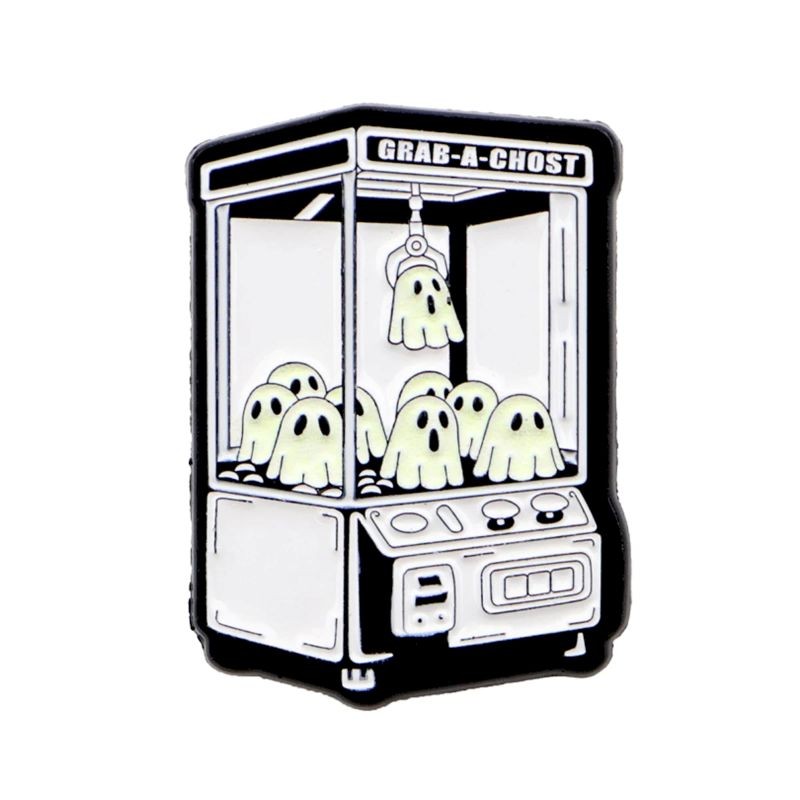 Pin émaillé de machine à sous avec des fantômes environ 2,3 × 3,2 cm motif dessiné insigne noir et blanc pour sac à dos revers de vêtements accessoire