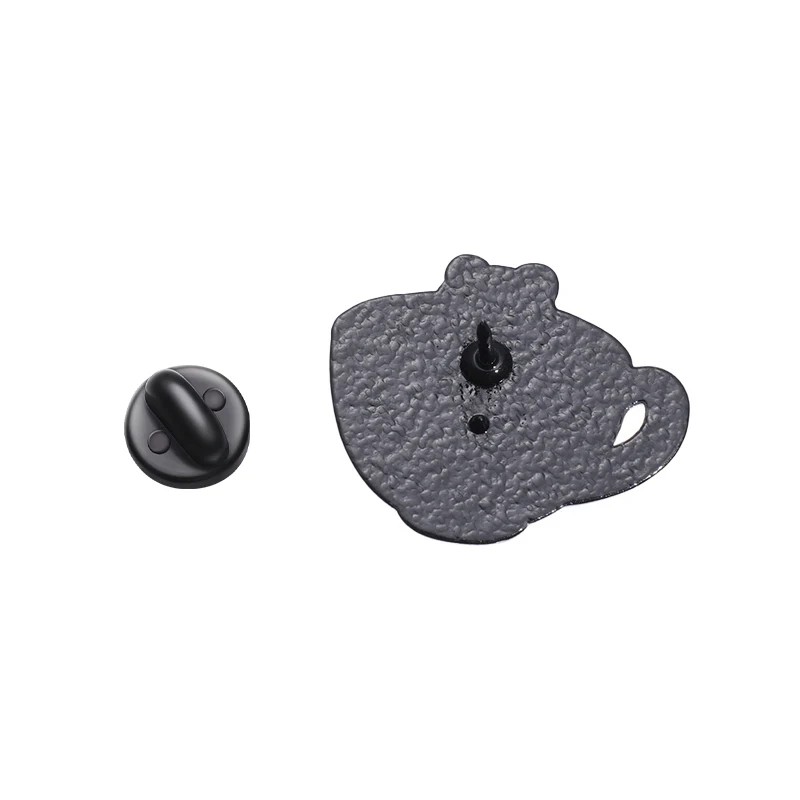 Le pin émaillé avec motif de grenouille dans une tasse à thé agit comme un accessoire délicat et ludique, qui attire par son style illustratif. Le design montre une grenouille stylisée assise dans une tasse, agrémentée d'éléments décoratifs sur sa surface. Le motif global est clair et grâce à des lignes simples, il est bien lisible même à une taille réduite.
