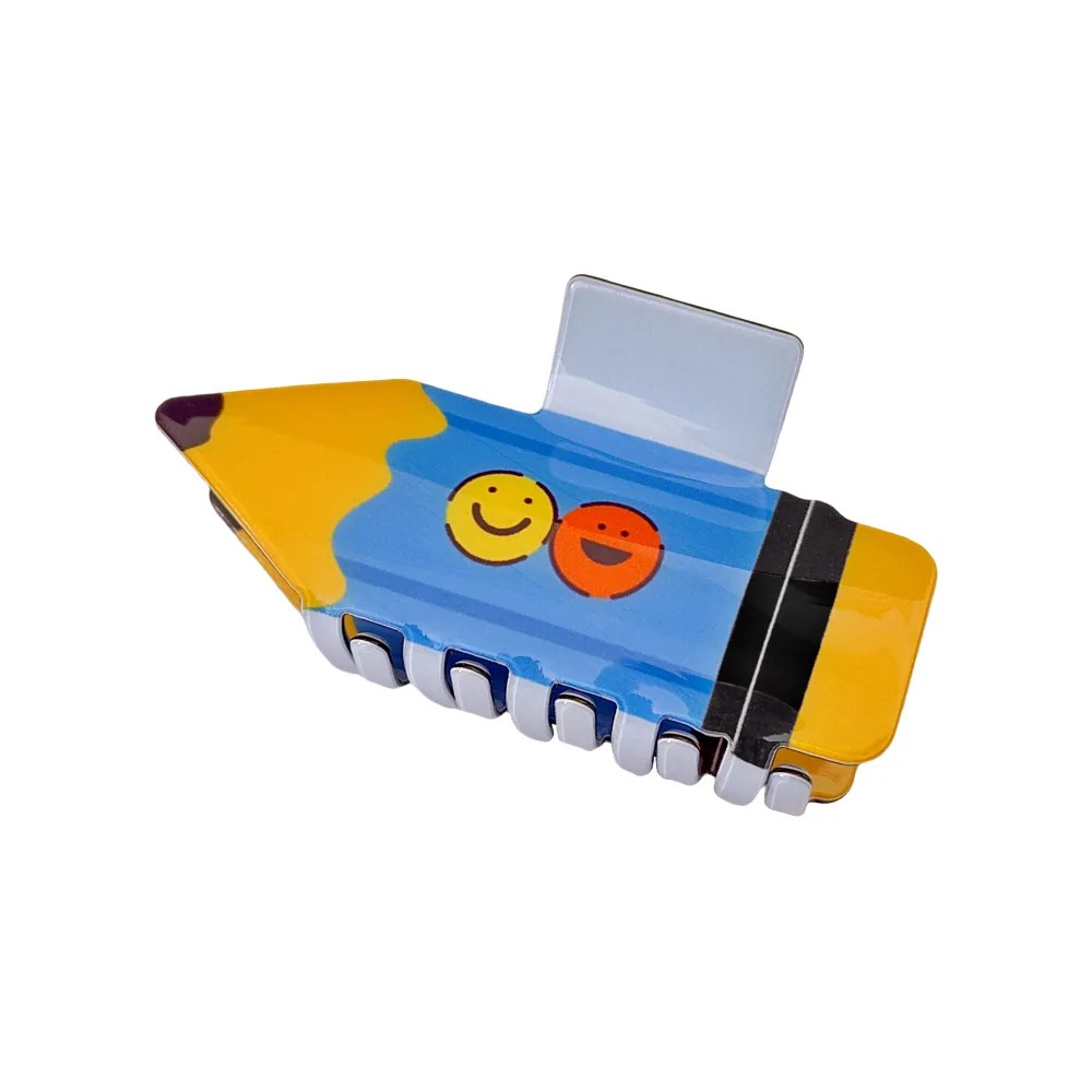 Accessoire capillaire stylé inspiré par la forme d'un crayon, il représente une combinaison originale de praticité et de design ludique. La pince attire l'attention par son apparence distinctive, qui anime instantanément chaque coiffure et lui donne un caractère unique. Grâce à ses différents motifs décoratifs, elle a un aspect moderne et frais, ce qui la rend adaptée aussi bien pour un usage quotidien que comme détail de mode intéressant pour des tenues décontractées.